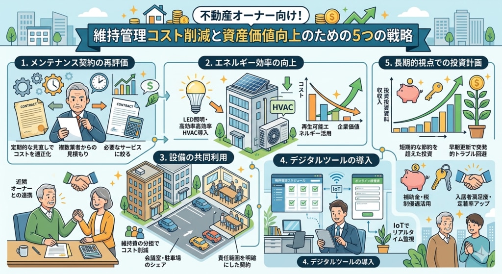 記事を見る建物管理のコストを最大30%削減するための5つの具体策を詳述。メンテナンス契約の見直し、エネルギー効率化、設備の共同利用、デジタル活用、長期的な投資計画など、実践的な戦略と効果を分かりやすく紹介します。資産価値向上にも役立つ内容です。